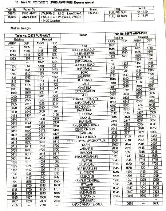 14: 02875/76 पुरी आनंदविहार पुरी नीलांचल