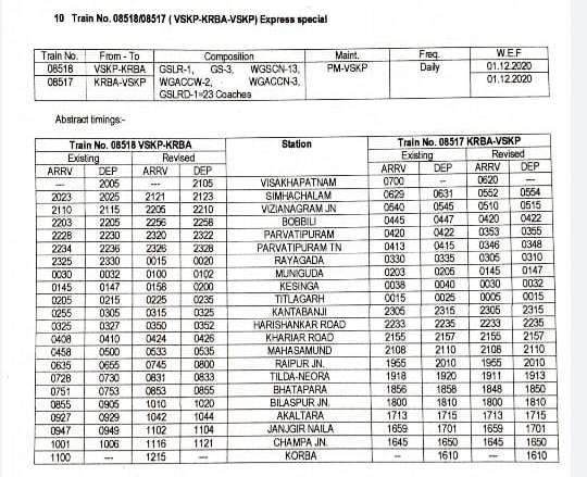 12: 08518/17 विशाखापट्टनम कोरबा विशाखापट्टनम