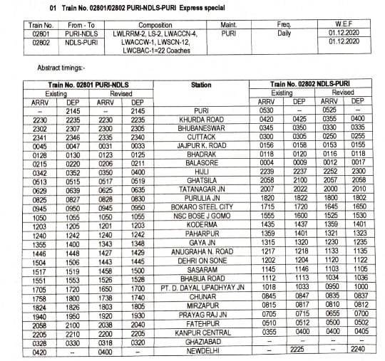 16: 02801/02 पुरी नई दिल्ली पुरी