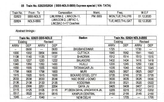 19: 02823/24 भुबनेश्वर नई दिल्ली भुबनेश्वर वाया टाटानगर