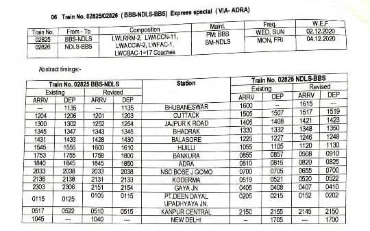 18: 02825/26 भुबनेश्वर नई दिल्ली भुबनेश्वर वाया आद्रा