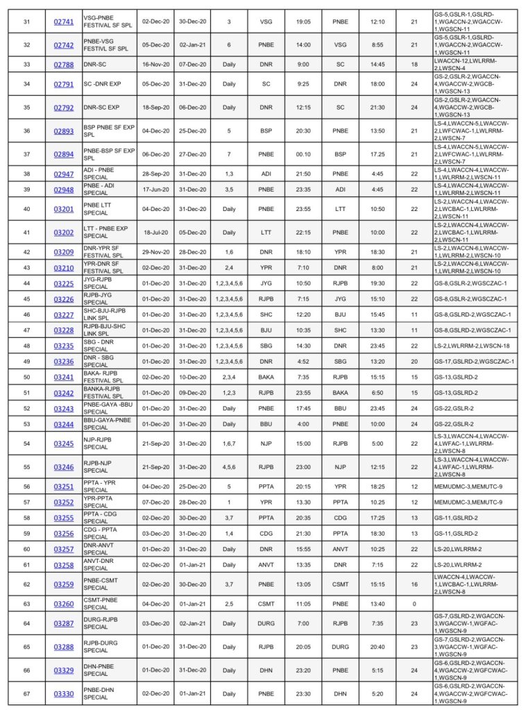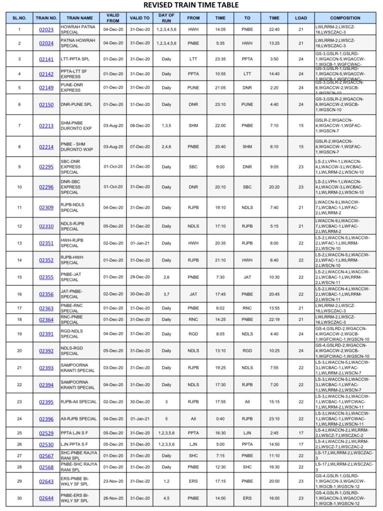 आज ही पूर्व रेल्वेका एक परीपत्रक जारी हुवा है, हालाँकि समयसारणी कब जारी हो रही है इसका उस परीपत्रक से कोई सीधा संवाद नही है मगर जितनी भी गाड़ियाँ चाहे वह त्यौहार स्पेशल हो या नियमित स्पेशल्स, पूर्व रेलवे के इस परीपत्रक मे उन्हें 31 दिसम्बर तक वैलिड बताया है। इसका अर्थ हम यह ले सकते है की आनेवाली जनवरी से सभी यात्री गाड़ियाँ नियमित की जा सकती है और नियोजित समयसारणी भी जारी हो सकती है।