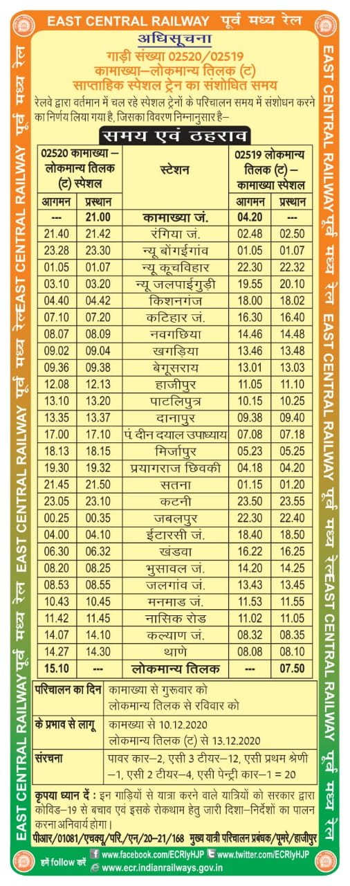 02520/19 लोकमान्य तिलक टर्मिनस कामाख्या लोकमान्य तिलक टर्मिनस स्पेशल