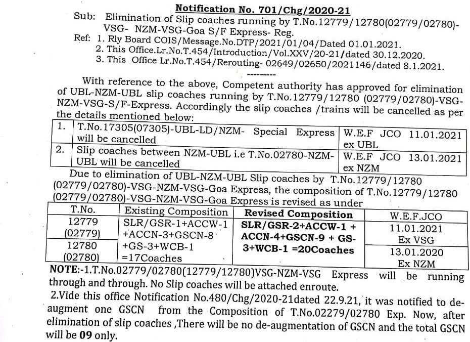 इस तरह गोवा एक्सप्रेस की हुब्बाली लिंक 11/13 जनवरीसे सदा के लिए बन्द की जा रही है।