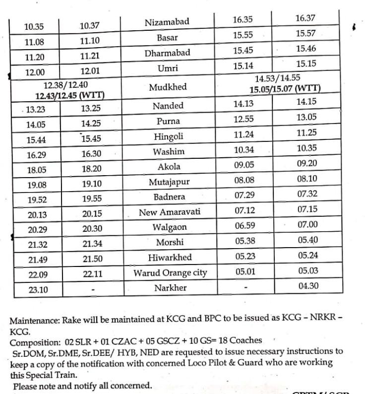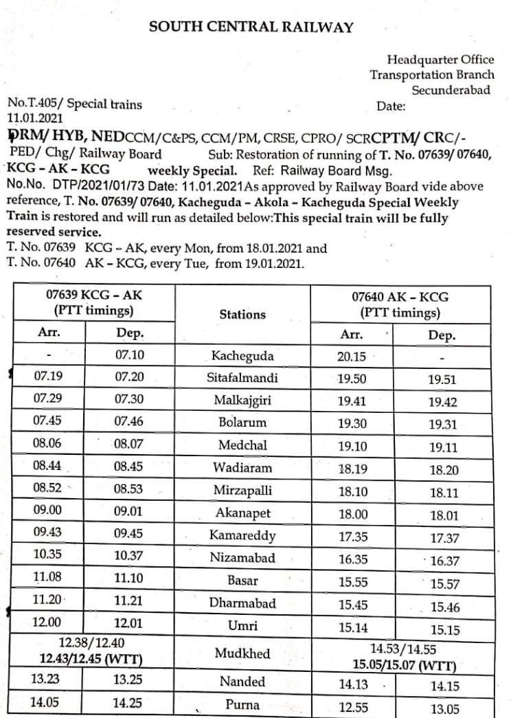 काचेगुड़ा नरखेड़, अकोला इण्टरसिटी शुरू हो रही है।