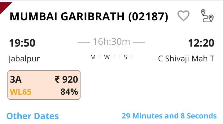 दूसरी गाड़ी है, 02187/88 जबलपुर मुम्बई जबलपुर गरीबरथ एक्सप्रेस। जबलपुर से मुम्बई का अंतर है 996 किलोमीटर और इसका बेस किराया है 766 रुपए, अन्य चार्जेस जोड़कर कुल किराया होता है 920 रुपए।