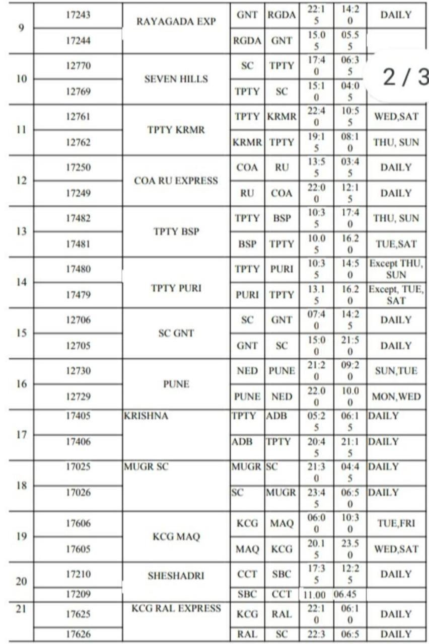 21 : 17625/26 काचेगुड़ा रेपल्ले काचेगुड़ा एक्सप्रेस प्रतिदिन