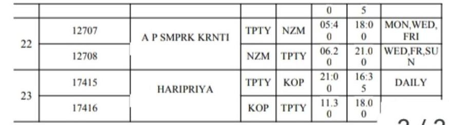 23 : 17415/16 तिरुपति छत्रपति शाहू महाराज टर्मिनस कोल्हापुर तिरुपति हरिप्रिया प्रतिदिन