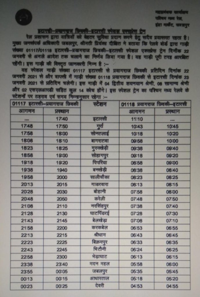 इटारसी प्रयागराज के बीच चलनेवाली सवारी बनी एक्सप्रेस,