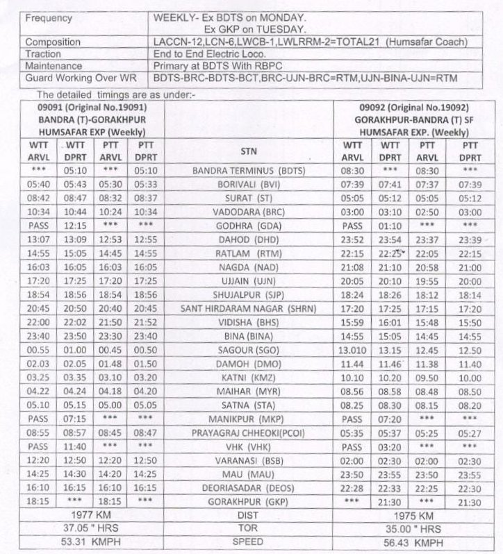 कुल मिलाकर मध्य रेल के यात्रिओंके लिए यह परीपत्रक उदासी लेकर आया था। 09089/90 अहमदाबाद गोरखपुर अहमदाबाद डेली स्पेशल इस क्षेत्र में चन्द ही दिनोंमें काफी लोकप्रिय गाड़ी हो गयी थी। उसी प्रकार 090843/84 मुजफ्फरपुर डेली स्पेशल भी बैक टू बैक चलनेवाली तेज गाड़ी थी। समय सुधार के बाद इसकी गति में कमी आ गयी है।