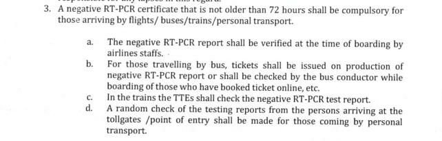 दरअसल ऐसी खबरें फैलने की वजह महाराष्ट्र में संक्रमण के आँकड़ोंमें बढ़ोतरी जो हो रही है। सोशल मीडिया पर तरह तरह की खबरे फैल रही है। निम्नलिखित परीपत्रक में महाराष्ट्र से कर्णाटक, केरल में पहुंचने वाले सभी मार्गों, रास्ते से, बसोंसे, हवाई मार्गसे या रेल से आने वाले यात्रिओंको RTPCR की 72 घंटे पूर्व की निगेटिव रिपोर्ट अनिवार्य की गई है।
