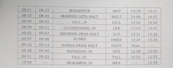 03029/30 हावडा मोकामा हावडा प्रतिदिन एक्सप्रेस विशेष दिनांक 21/22 फ़रवरी से शुरू की जा रही हर।