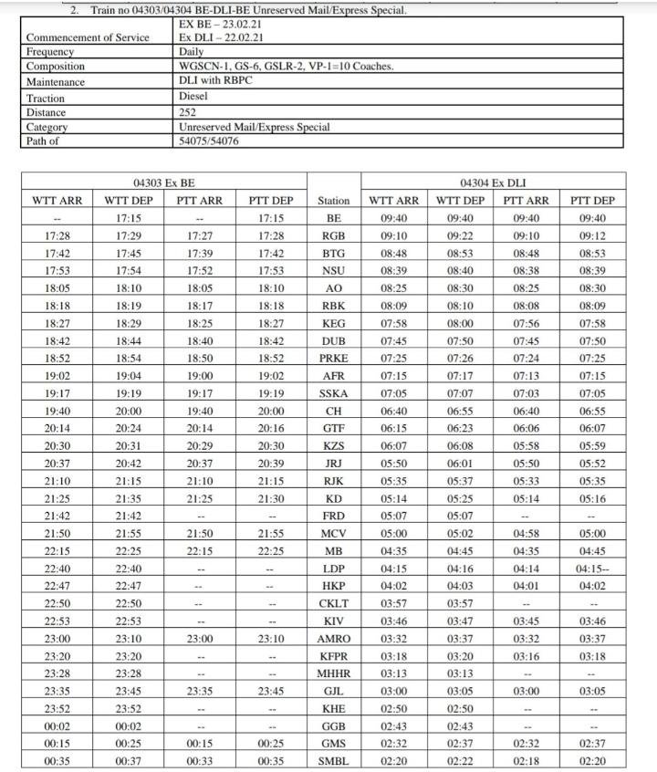 04303/04 बरेली दिल्ली बरेली अनारक्षित प्रतिदिन मेल/एक्सप्रेस मेमू, दिनांक 22/23 फ़रवरी से शुरू हो चुकी है।
