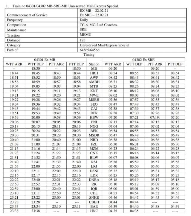04301/02 मोरादाबाद सहारनपुर मोरादाबाद प्रतिदिन अनारक्षित मेल/एक्सप्रेस मेमू दिनांक 22 फरवरी से शुरू हो चुकी है।