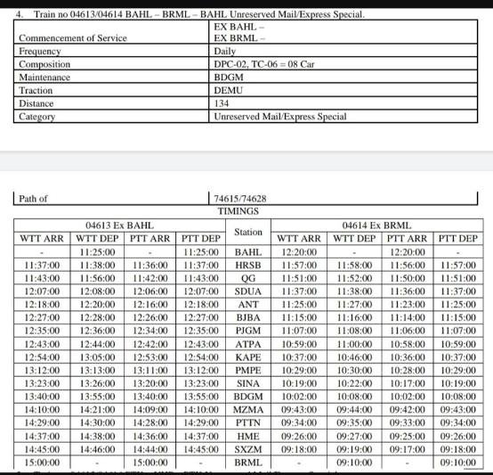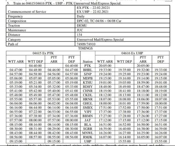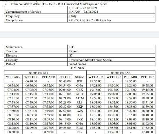 04603/04 बठिण्डा फ़िरोजपुर बठिण्डा अनारक्षित प्रतिदिन मेल/एक्सप्रेस मेमू दिनांक 22 फ़रवरी से शुरू हो चुकी है।