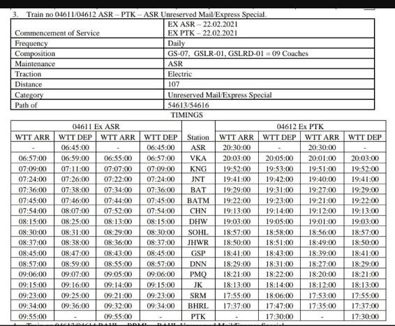 04611/12 अमृतसर पठानकोट अमृतसर अनारक्षित प्रतिदिन मेल/एक्सप्रेस मेमू दिनांक 22 फ़रवरी से शुरू हो चुकी है।