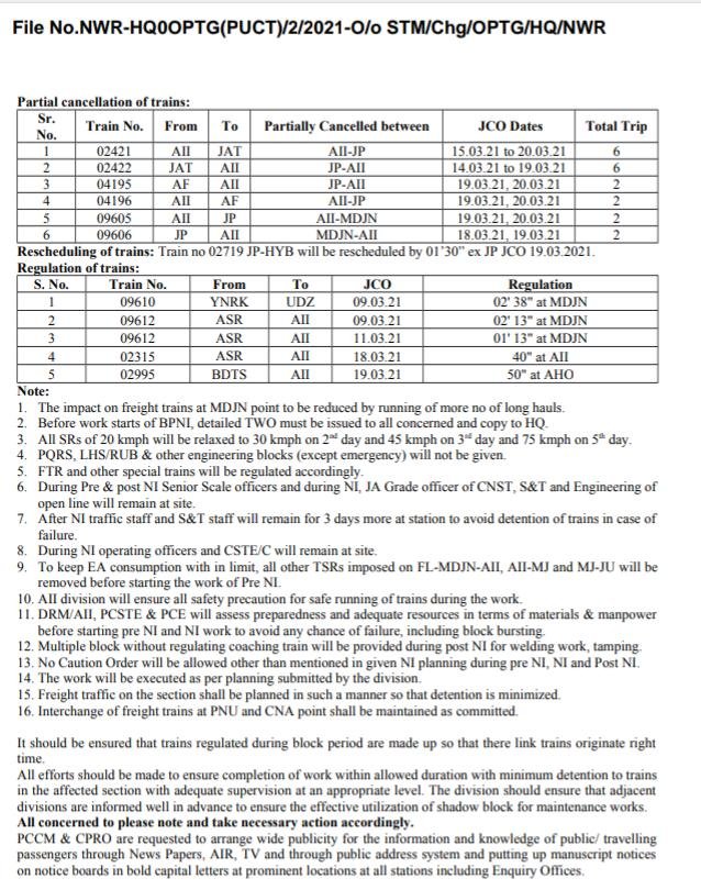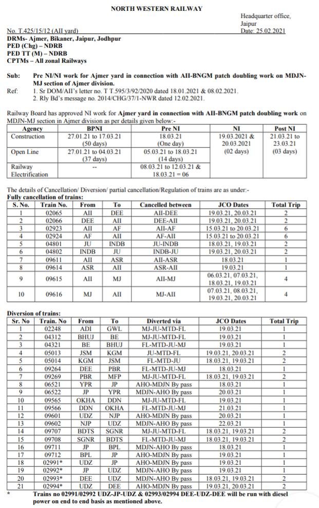 Uncategorisedअजमेर यार्ड का रिमॉडलिंग किया जाना है अतः कई गाड़ियाँ रद्द/परावर्तित/ देरीसे चलाई जाएगी। 25th Feb 2021 Rail Duniya Share this: Share on WhatsApp (Opens in new window) WhatsApp Share on X (Opens in new window) X Share on Facebook (Opens in new window) Facebook Share on Telegram (Opens in new window) Telegram Email a link to a friend (Opens in new window) Email Like Loading... Related Published by Rail Duniya Rail Duniya is a magazine publishing all India train timings since 1988. View all posts by Rail Duniya