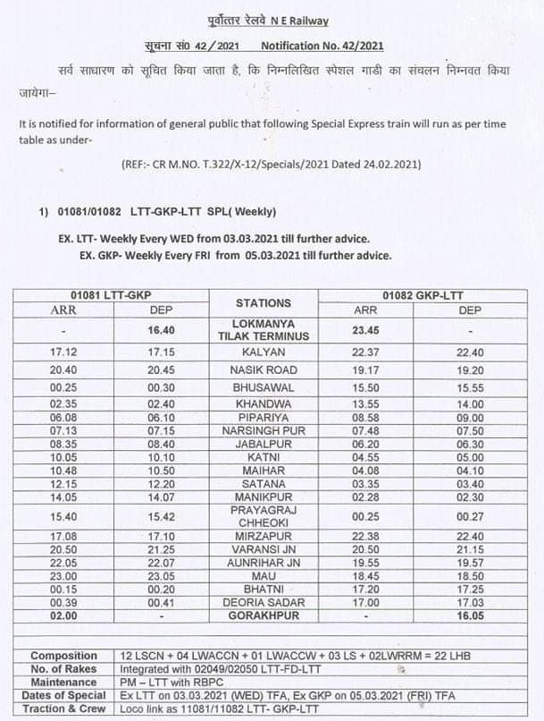 Uncategorised01081/82 लोकमान्य तिलक टर्मिनस और गोरखपुर के बीच साप्ताहिक विशेष 03 मार्च से शुरू 25th Feb 2021 Rail Duniya Share this: Share on WhatsApp (Opens in new window) WhatsApp Share on X (Opens in new window) X Share on Facebook (Opens in new window) Facebook Share on Telegram (Opens in new window) Telegram Email a link to a friend (Opens in new window) Email Like Loading... Related Published by Rail Duniya Rail Duniya is a magazine publishing all India train timings since 1988. View all posts by Rail Duniya