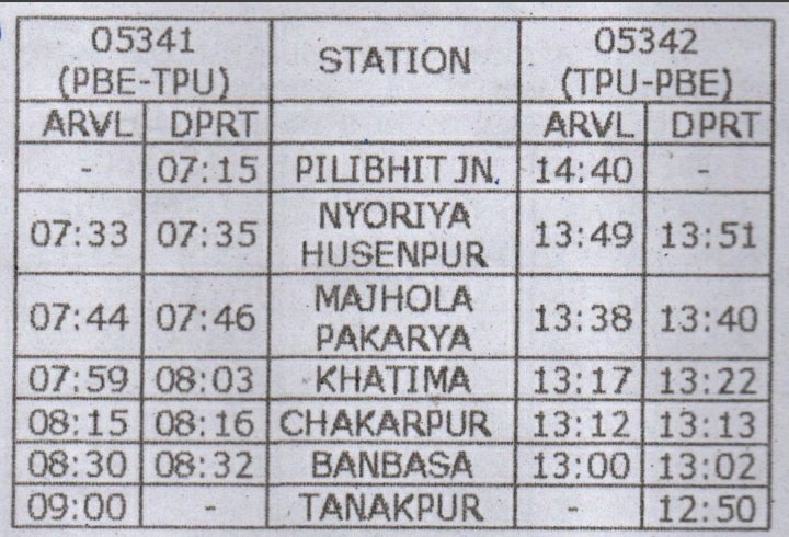 रेल यात्रियों की सुविधा हेतु पीलीभीत-टनकपुर के मध्य 05341/05342 पीलीभीत-टनकपुर-पीलीभीत अनारक्षित एक्सप्रेस गाड़ी का संचलन 04 मार्च, 2021 से प्रतिदिन किया जायेगा।