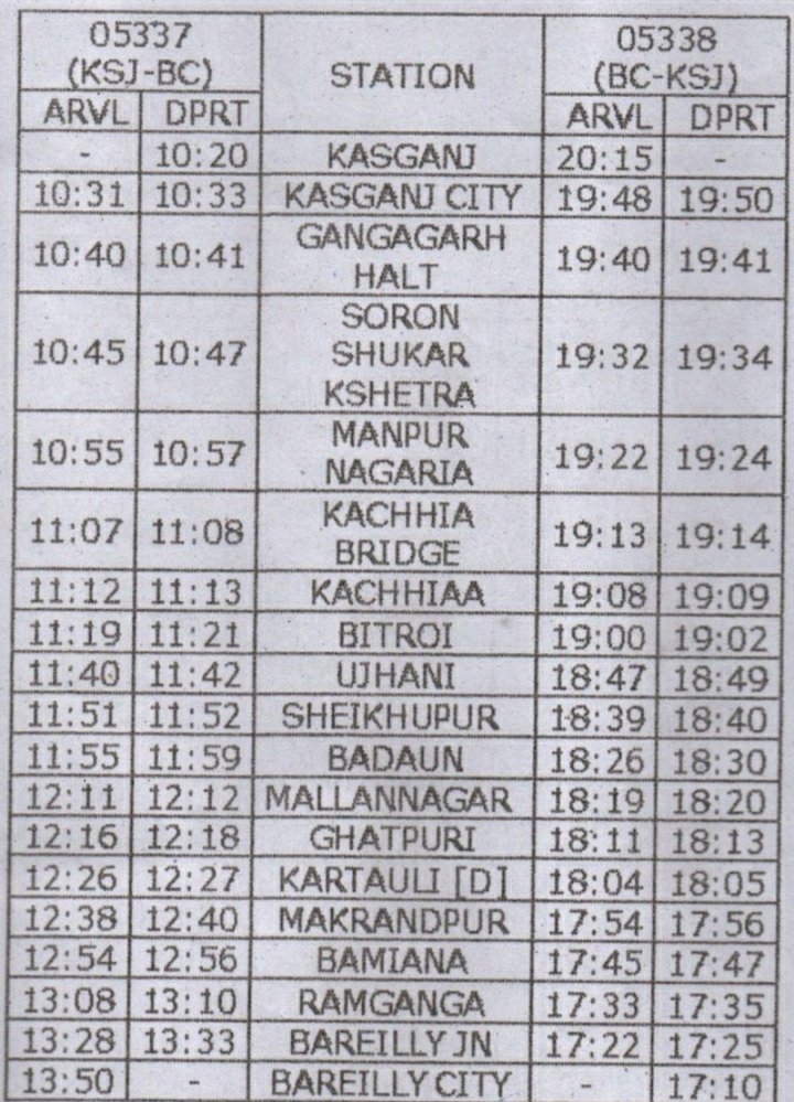 रेल यात्रियों की सुविधा हेतु बरेली सिटी-पीलीभीत के मध्य 05339/05340 बरेली सिटी-पीलीभीत-बरेली सिटी अनारक्षित एक्सप्रेस गाड़ी का संचलन 04 मार्च, 2021 से प्रतिदिन किया जायेगा।