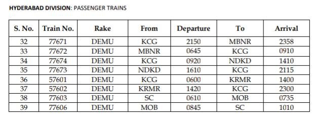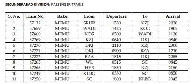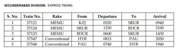सिकंदराबाद मण्डल की सवारी गाड़ियाँ जो एक्सप्रेस में बदली जाएगी।