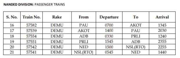 57541/42 नागरसोल हुजूर साहिब नान्देड नागरसोल सवारी गाड़ी को बदले समयोनुसार डेमू रैक से चलाया जाएगा