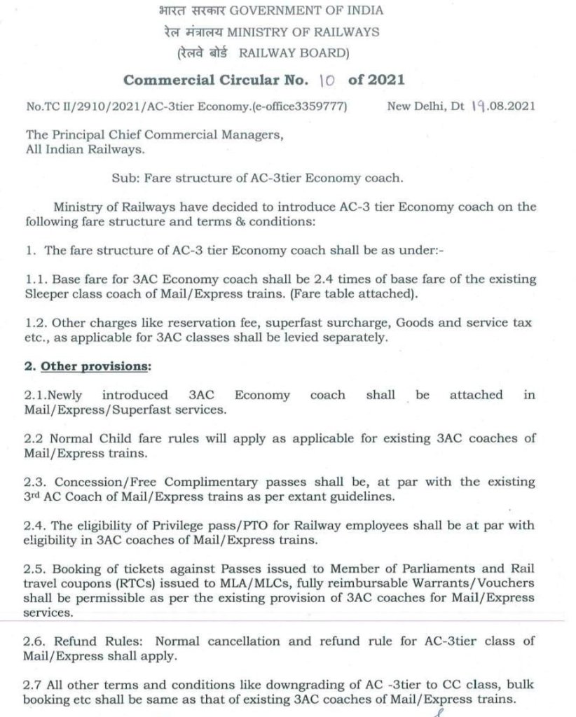 भारतीय रेल ने एक 83 शायिका/आसन वाला वातानुकूलित 3 टियर कोच का निर्माण किया है। इसकी तस्वीरें और सुविधाओंका बखान तो आपने सोशल मीडिया में कई बार देख और सुन चुके होंगे अतः फिर से उस बारे में चर्चा करने की जरूरत नही। कल रेल प्रशासन ने इसकी रेट लिस्ट जारी की है। द्वितीय श्रेणी स्लिपर क्लास से 2.4 गुना ज्यादा इसका किराया दर रहेगा। इसके अलावा आरक्षण चार्ज, सुपरफास्ट सर चार्ज, GST यह सब अतिरिक्त जोड़ लीजिए।