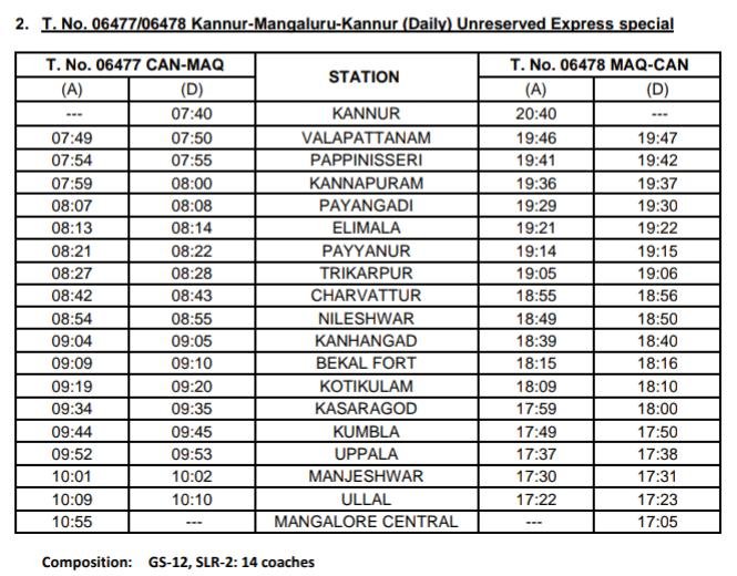 06477/78 कुन्नूर मंगालुरु सेंट्रल कुन्नूर सवारी गाड़ी