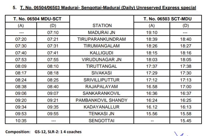 06504/03 मदुरै सेनगोंटाई मदुरै प्रतिदिन सवारी