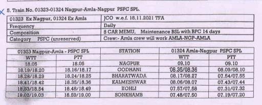 5: 01323/24 नागपुर आमला नागपुर अनारक्षित प्रतिदिन मेमू दिनांक 18 नवम्बर से चलना शुरू करेगी।