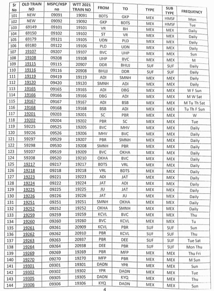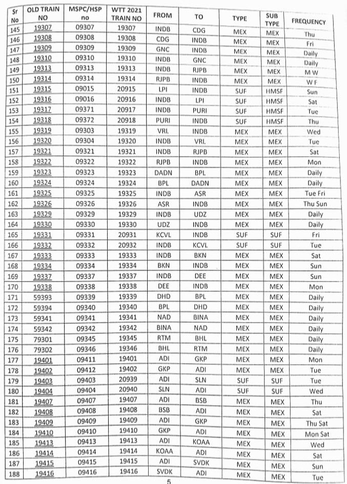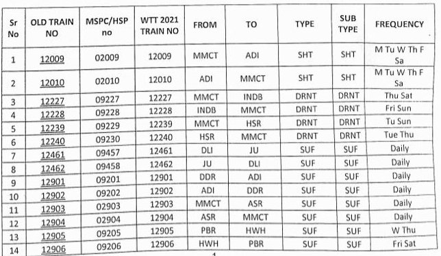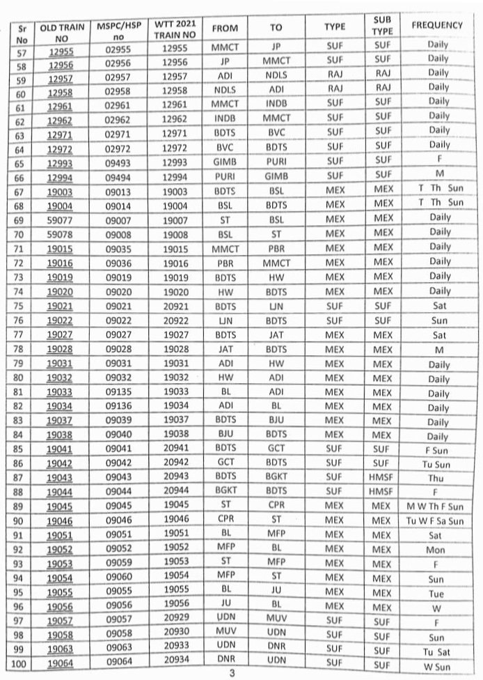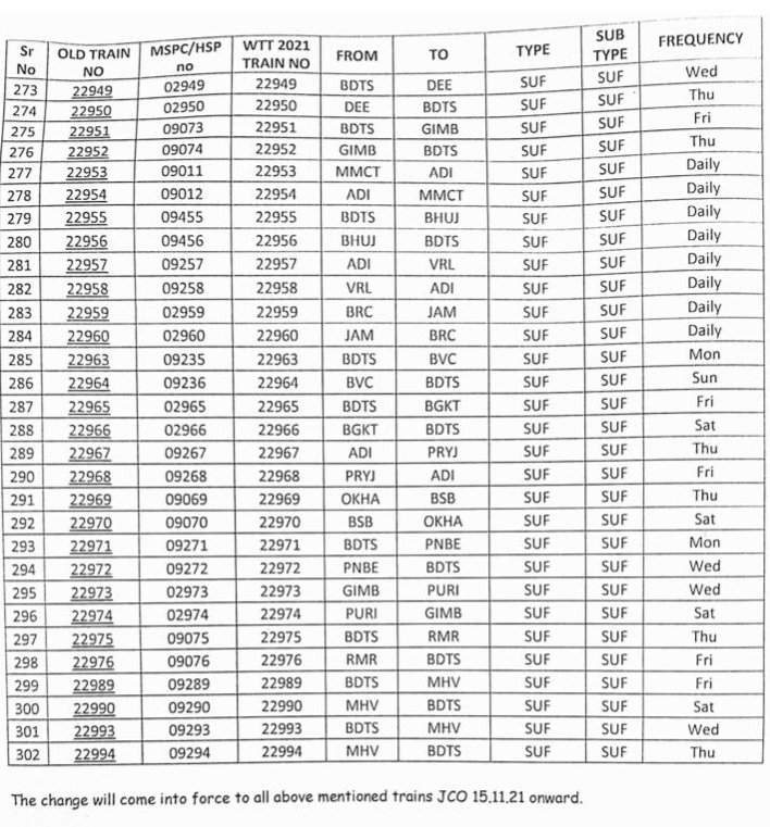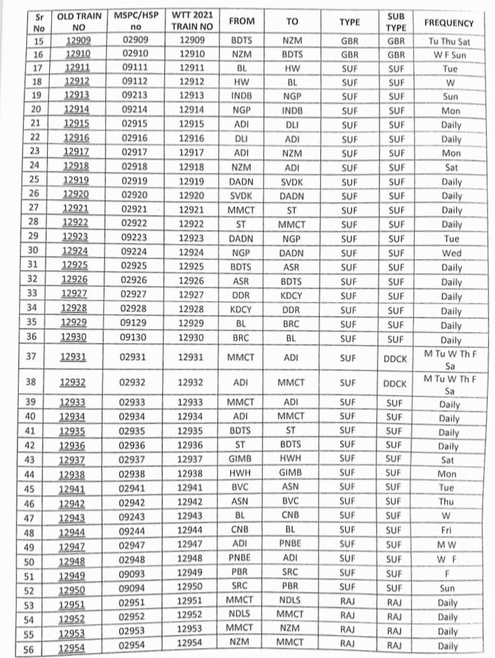 पश्चिम रेलवे में दिनांक 15 नवम्बर से 302 MSPC मेल/एक्सप्रेस विशेष और HSP त्यौहार विशेष गाड़ियोंका नियमितीकरण किया जा रहा है। उपरोक्त गाड़ियोंके क्रमांक बदले जाएंगे साथ ही किराया श्रेणी भी नियमित की जाएगी।
