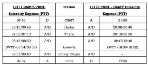 3: मुम्बई पुणे के बीच यात्रिओंकी चहेती 12127/28 इंटरसिटी सुपरफास्ट एक्सप्रेस 01 दिसम्बर से दोनोंही दिशाओं से यात्री सेवा में दाखिल हो रही है।