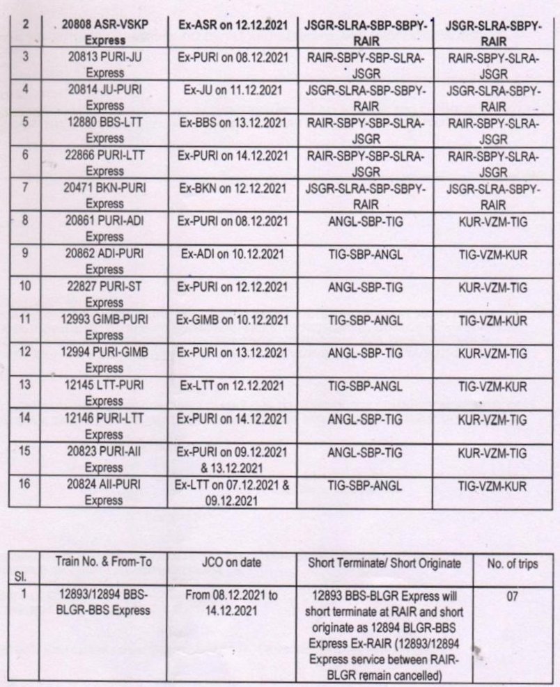 सम्बलपुर से पूरी के बीच उपरोक्त दिनोंमें रेल यात्रा का नियोजन हो तो कृपया रेल हेल्पलाइन 139 या रेलवे की वेबसाइट, ऍप से गाड़ियोंके परिचालन को समझ ले और तदनुसार अपनी रेल यात्रा का नियोजन करे।