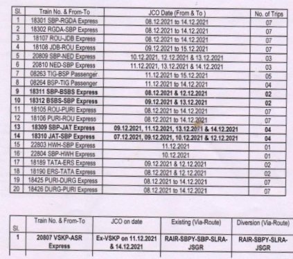 यात्रीगण कृपया ध्यान दीजिए, सम्बलपुर मण्डल के सम्बलपुर – टीटीलागढ़ खण्ड पर सम्बलपुर से हीराकुड के बीच रेल दोहरीकरण का कार्य चल रहा है। इस कार्य के तहत 20 गाड़ियाँ रद्द, 16 गाड़ियाँ परावर्तित मार्ग से और 1 जोड़ी गाड़ी अंशतः रद्द रहेगी। यह रेल ब्लॉक 08 से 14 दिसम्बर के बीच रहेगा।