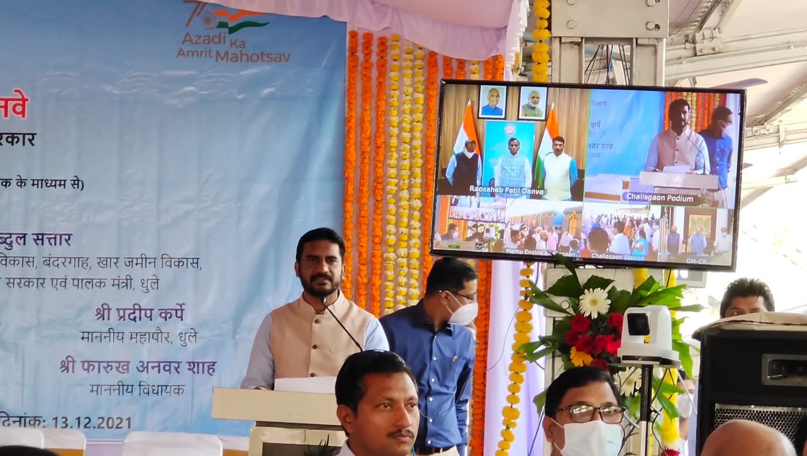 आज दिनांक 13 दिसम्बर को रेल राज्यमंत्री रावसाहेब दानवे पाटील द्वारा वीडियो लिंक के जरिए दिल्ली से किया गया। उनके साथ धुळे के सांसद सुभाष भामरे एवं जलगाँव लोकसभा संसदीय क्षेत्र के सांसद उन्मेष पाटील उपस्थित थे।