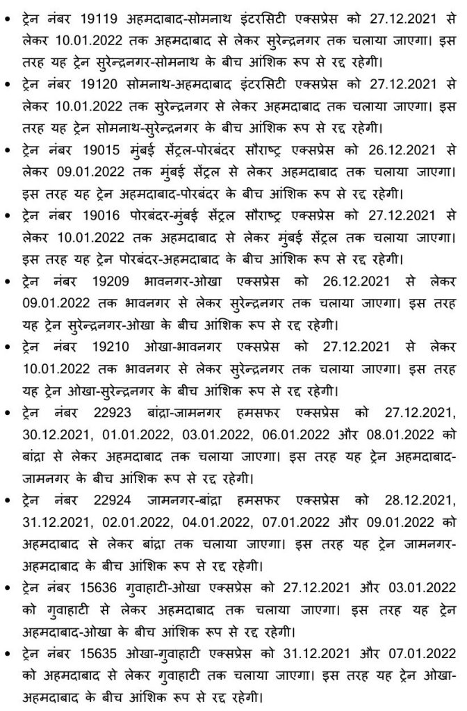 राजकोट मण्डल में 27 दिसम्बर 2021 से 11 जनवरी 2022 तक रेल ब्लॉक, 6 गाड़ियाँ पूर्णतयः रद्द और 12 गाड़ियाँ आंशिक रूप से रद्द की जा रही है।