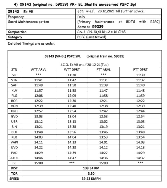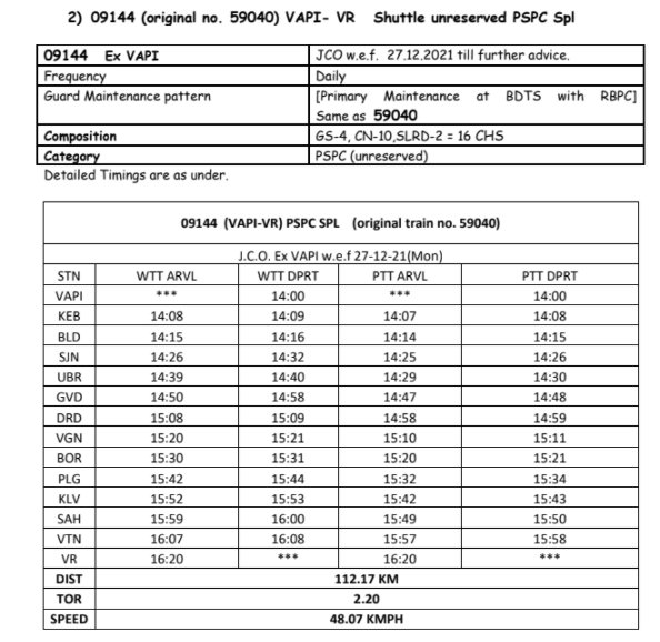 2: 09144 वापी विरार प्रतिदिन अनारक्षित विशेष दिनांक 27 दिसंबर से चल पड़ेगी, पूर्व की 59040 पैसेंजर