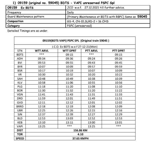 1: 09159 बान्द्रा टर्मिनस वापी प्रतिदिन विशेष दिनांक 27 दिसंबर से चल पड़ेगी, पूर्व की 59045 पैसेंजर