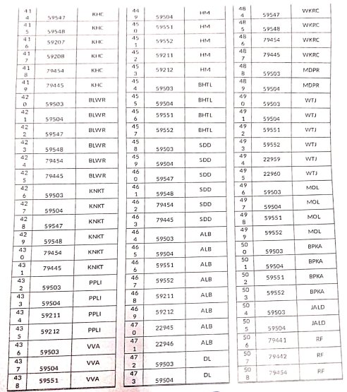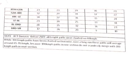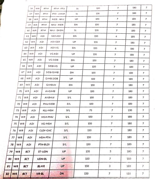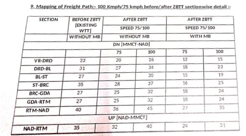 9: मालगाड़ियोंके मार्ग – वह मार्ग जीन पर शून्याधारित समयसारणी लागू होने के बाद गति सीमा बढ़कर 75/100 किलोमीटर प्रति घण्टा की जा सकती है।