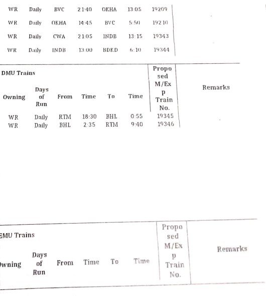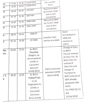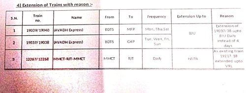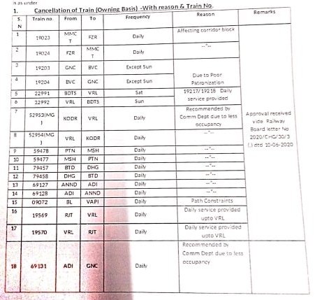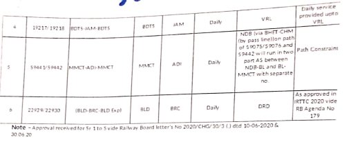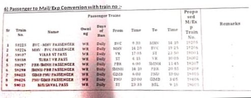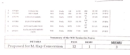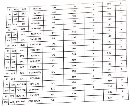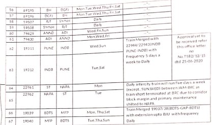 6: 16 गाड़ियोंकी परिचालन श्रेणी में बदलाव – 12 सवारी गाड़ी, 1 डेमू और 3 मेमू गाड़ियाँ एक्सप्रेस में परावर्तित की जाएगी।