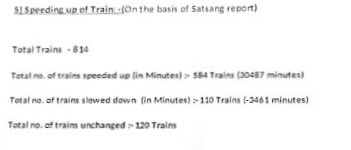 5 : गाड़ियोंकी गती नियन्त्रित करना (स्पीड अप/डाउन) इसमें 584 गाड़ियोंको स्पीड अप, 110 गाडीयोंको स्पीड डाउन और 120 गाड़ियोंमे कोई बदलाव नही किए जाने का प्रस्ताव है।