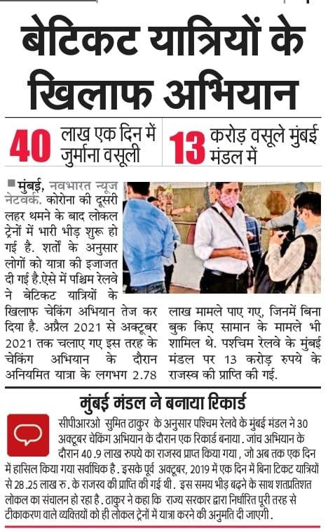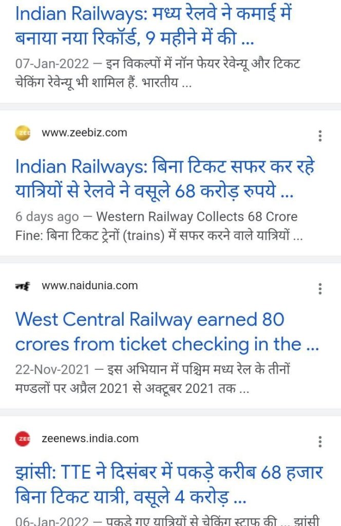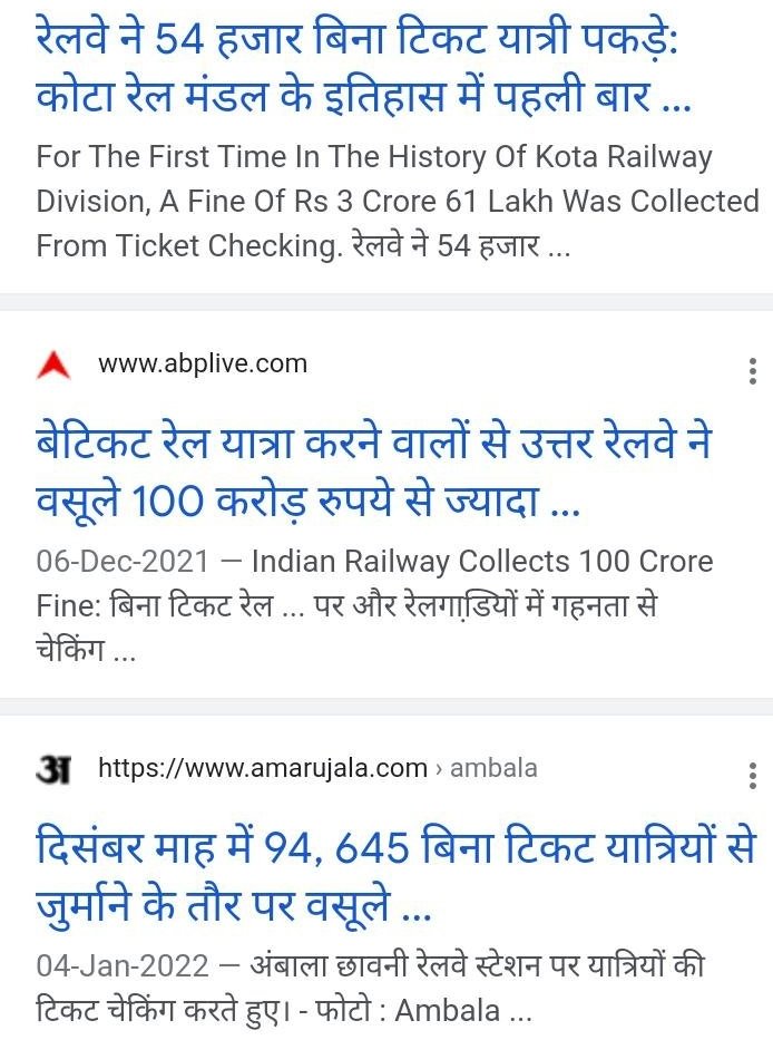 अखबारोंमें छपी निम्नलिखित सुर्खियां देखिए, क्या वजह होंगी की रेलवे चेकिंग स्टाफ़ का करोड़ों, अरबों रुपए जुर्माना वसूल हो रहा है?