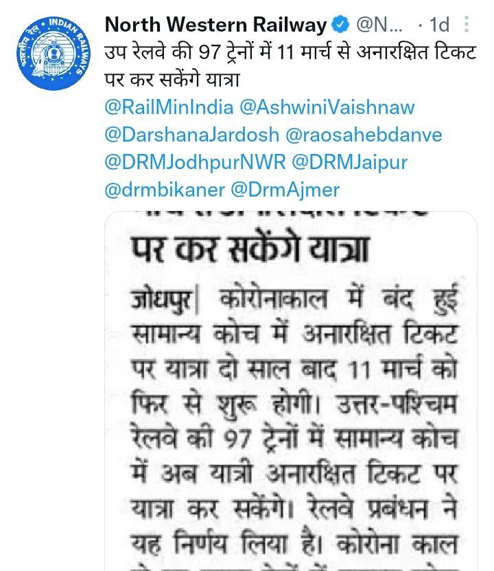अब पेंच फंस कहा रहा है? तो उत्तर पश्चिम रेल्वे के निम्नलिखित ट्विट्स पर,