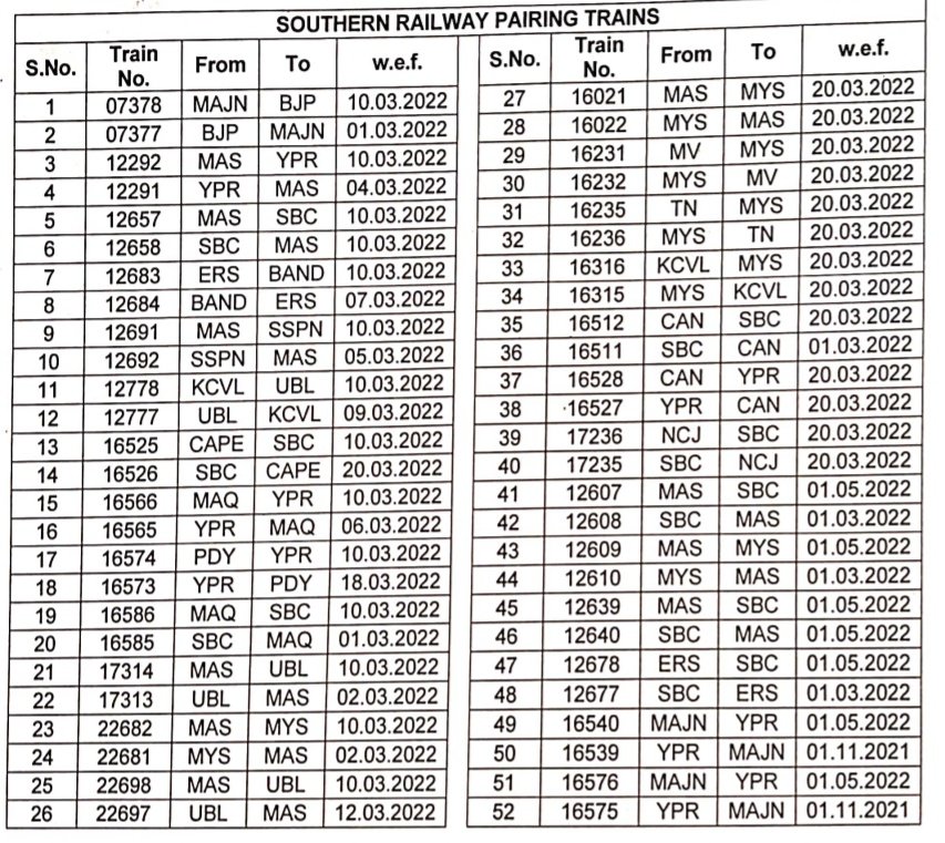 द प रेल SWR में अनारक्षित द्वितीय श्रेणी उपलब्ध रहने वाली गाड़िया :- यात्री गण कृपया सुविधा जारी किए जाने की तिथि पर ध्यान दें।