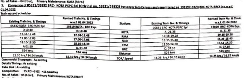 गौरतलब यह है, यह दोनों गाड़ियाँ 59811/12 और 59831/32 पहले सवारी यात्री किरायोंमे चलती थी। शून्याधारित समयसारणी के अनुशंसा में कुछ सवारी गाड़ियोंको एक्सप्रेस में तब्दील किया जाना है अतः यह दोनों गाड़ियाँ एक्सप्रेस क्रमांक से चलेगी। वैसे भी संक्रमण काल के बाद जब से चली है, विशेष श्रेणी के कारण इन गाड़ियोंकी यात्रा करने हेतु एक्सप्रेस किराया ही देना पड़ता था।