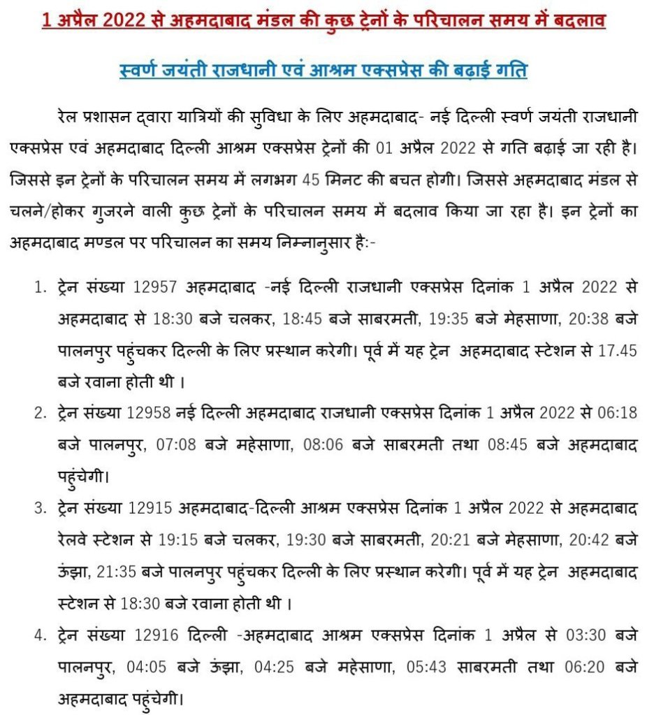 Uncategorisedपश्चिम रेलवे के कुछ गाड़ियोंकी गति पहली अप्रैल से बढाई जा रही है, यात्रा के समय मे होंगी कटौती! 28th Mar 2022 Rail Duniya Share this: Share on WhatsApp (Opens in new window) WhatsApp Share on X (Opens in new window) X Share on Facebook (Opens in new window) Facebook Share on Telegram (Opens in new window) Telegram Email a link to a friend (Opens in new window) Email Like Loading... Related Published by Rail Duniya Rail Duniya is a magazine publishing all India train timings since 1988. View all posts by Rail Duniya