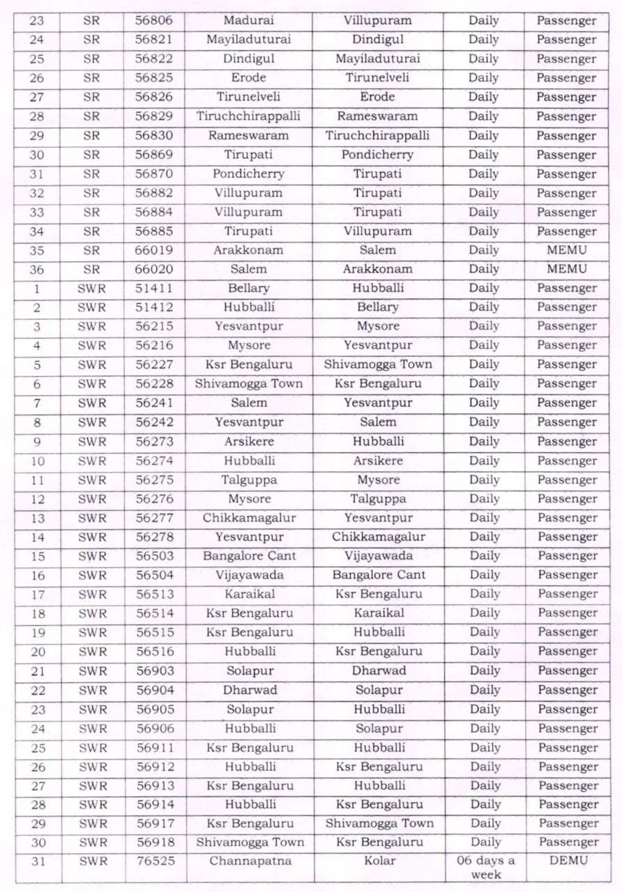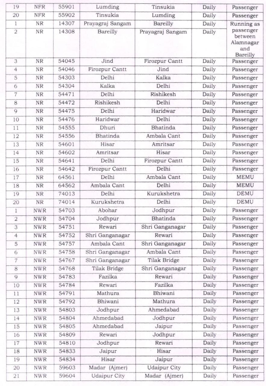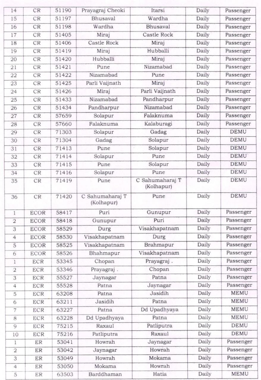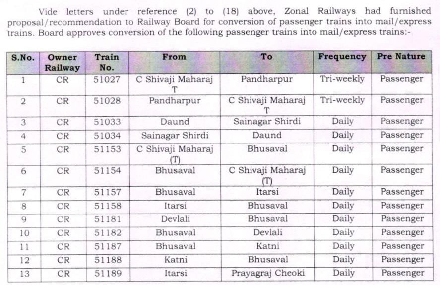 यह है सूची, सवारी गाड़ियों को एक्सप्रेस में बदले जाने की।