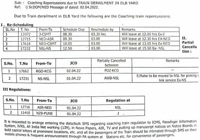 मार्ग की यात्री गाड़ियोंका परिचालन बिगड़ा, यात्रीगण कृपया द म रेल के निम्नलिखित परिपत्रक देखे,