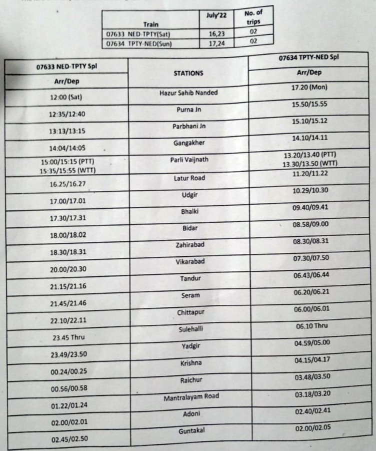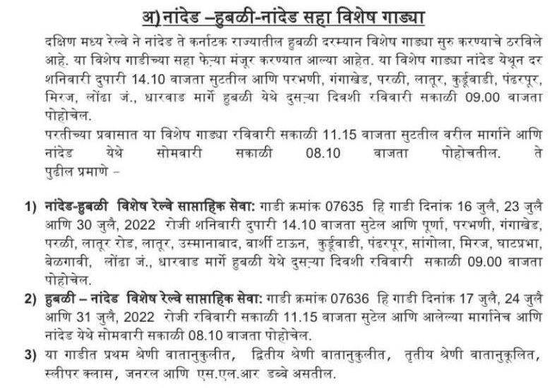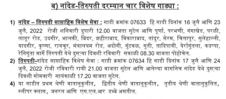 Uncategorisedनान्देड़ मण्डल की नान्देड़ – तिरुपति – नान्देड़ विशेष और नान्देड़ – हुबली – नान्देड़ विशेष 14th Jul 2022 Rail Duniya Share this: Share on WhatsApp (Opens in new window) WhatsApp Share on X (Opens in new window) X Share on Facebook (Opens in new window) Facebook Share on Telegram (Opens in new window) Telegram Email a link to a friend (Opens in new window) Email Like Loading... Related Published by Rail Duniya Rail Duniya is a magazine publishing all India train timings since 1988. View all posts by Rail Duniya
