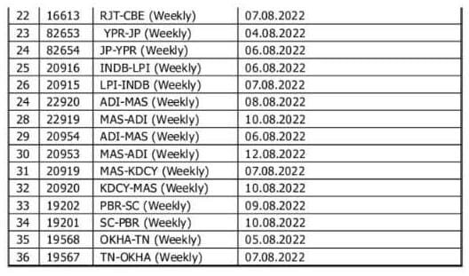 निम्नलिखित 36 गाड़ियाँ अपने प्रारम्भिक स्टेशन से नही चलाई जाएंगी, सम्पूर्ण रद्द रहेगी।